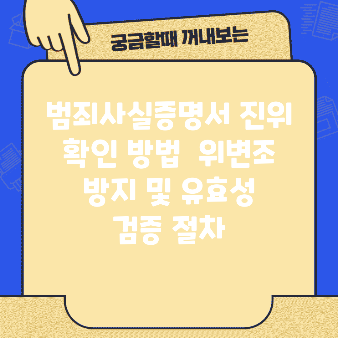 범죄사실증명서는 각종 기관에서 필요로 하는 필수 서류이며, 그 진위 확인은 매우 중요합니다. 위변조를 방지하기 위한 절차를 숙지하는 것이 필요합니다.